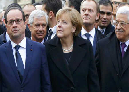Em Paris, cerca de 40 líderes mundiais deram os braços e caminharam junto à multidão, entre eles o presidente da França, François Hollande, o premiê britânico, David Cameron, a chanceler alemã, Angela Merkel, o premiê italiano, Matteo Renzi, o premiê espanhol, Mariano Rajoy, o presidente do Mali, Ibrahim Boubacar Keita.