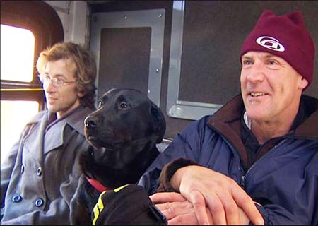 Os passageiros se divertem com a cachorra esperta e adoram tê-la do lado.