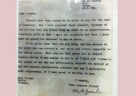 Mahatma Gandhi – o líder pacifista que comandou o processo de independência da Índia – tentou evitar com a correspondência escrita em 23 de julho de 1939, que a Alemanha do Führer invadisse a Polônia e desse início à Segunda Guerra Mundial.