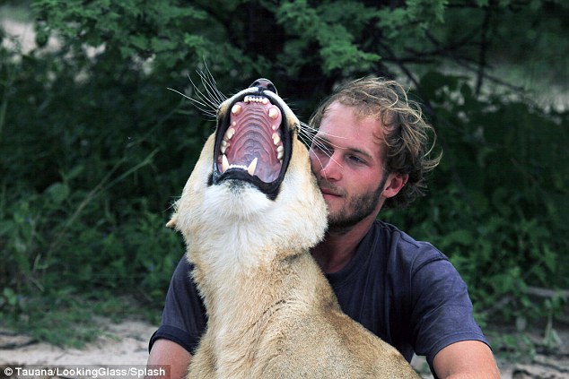 O jovem de 27 anos salvou a leoa quando ainda era um pequeno filhote, abandonado pela mãe, em terras que pertencem a Willie De Graaff, em Botswana, África.