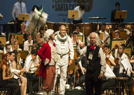 O espetáculo é diferente porque os músicos se agrupam no palco e aí sim formam uma orquestra, aproximando a garotada da musica clássica.