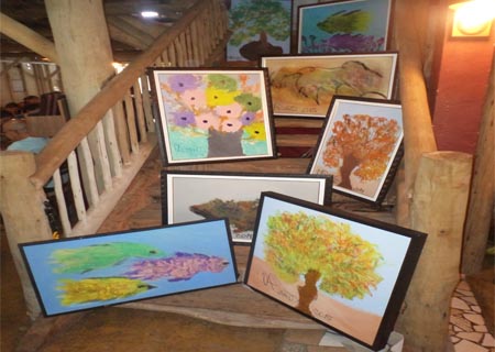 As pinturas são abstratas e retratam, principalmente, a natureza, paisagens, flores e animais, com muita cor e alegria.