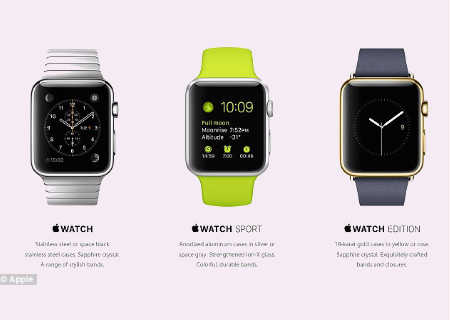 O Apple Watch estará disponível em três versões: Watch, Watch Sport, and Watch Edition, uma versão feita de metais preciosos especialmente desenvolvidas.