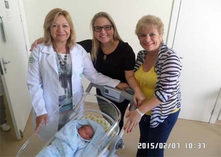 A vendedora Nivalda Maria Candioto Raupp, de 55 anos, (à direita na foto) deu à luz a Arthur na última quinta-feira, em Criciúma, Santa Catarina.