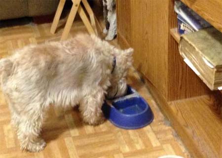 Sua dona, Nancy Franck tem dois cãezinhos schnauzer: Sissy e Barney.
