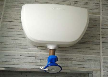 O chuveiro econômico é feito com uma caixa de descarga de plástico e uma ducha.
