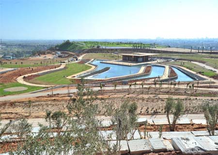 Esse novo parque, chamado Ariel Sharon, inclui uma estação de reciclagem de 60 hectares, tem trilhas de caminhada e ciclovias, lagos e espaço para atividades esportivas.