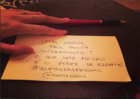 Ao ver a imagem de uma lista de compras escrita por uma amiga, ela publicou no Twitter a mensagem “Com toda a sua cadência, particularidades, incongruências e hesitações… Eu adoro a letra #aletradaspessoas”.