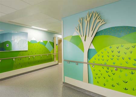 A ONG, encarregada de introduzir arte nos hospitais da Grã Bretanha, reuniu 15 artistas, que juntos deram uma cara mais colorida e divertida ao local.