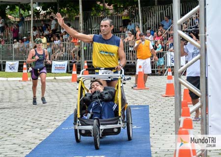 Um pai decidiu propiciar ao seu filho, portador de deficiência, uma emoção que ele jamais poderia sentir: competir em um Triathlon e cruzar a linha de chegada.