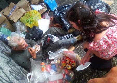 Jovem comemora aniversário com sem-teto