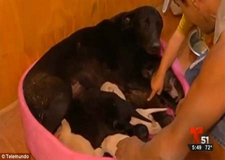 Para salvar os seus filhos, a cadela, de nome Blacky, cavou um buraco embaixo de uma proteção de metal.