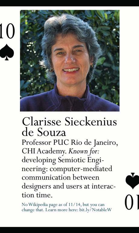 Clarisse Sieckenius de Souza, do Departamento de Informática do Centro Técnico Científico da PUC-Rio, foi incluída em um baralho criado pelo Notable Women in Computing, estampado com fotos de 54 notáveis especialistas na área.