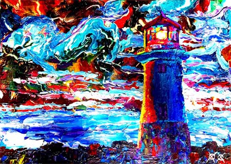 John Bramblitt usa braille em seus tubos de tinta, para saber quais são as cores e sabe misturar os tons com harmonia para conseguir o resultado final.