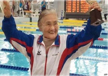 A japonesa Mieko Nagaoka foi a primeira mulher de 100 anos a conseguir completar uma prova de 1.500 metros nado livre em uma piscina semi-olímpica, de 25 metros.