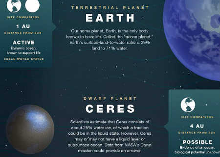 A Nasa, Agência Espacial Americana, lançou um infográfico (detalhes abaixo) que detalha os vários mundos do nosso sistema solar, com suspeita de oceanos do subsolo.