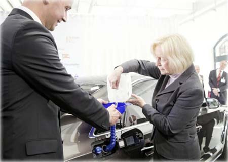 A ministra da Educação e Pesquisa da Alemanha, Johanna Wanka, abasteceu seu Audi A8 com e-diesel e elogiou o produto.