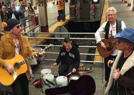O pessoal que passou pelo metrô de Nova York registrou o show de Bono Vox e cia.