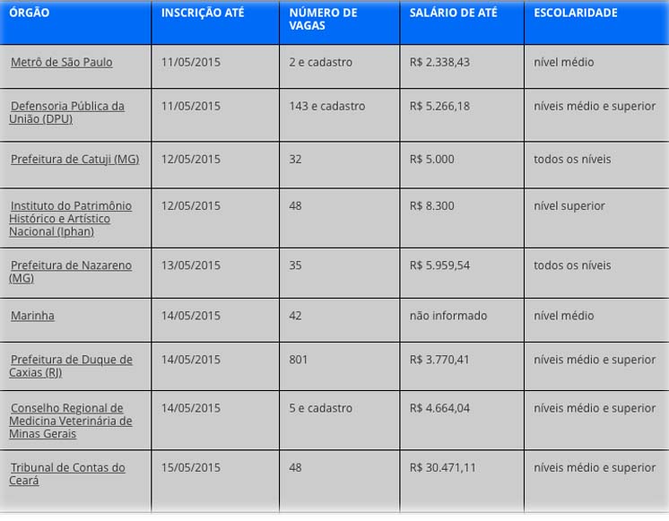 Concursos com salários de R$ 3 mil a R$ 30 mil