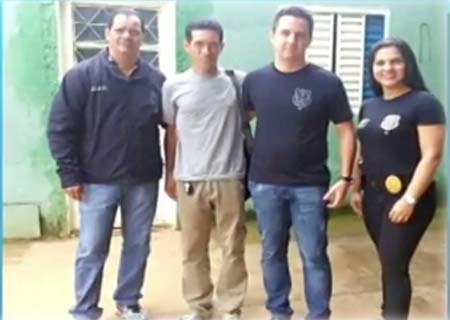 Foto Mario Ferreira Lima com policiais que o ajudaram reprodução/TV Band-Brasília