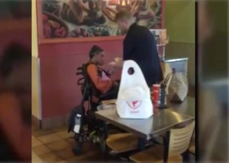 Um simples ato de gentileza e carinho de um funcionário de lanchonete, com uma mulher portadora de deficiência física, emocionou os EUA e se tornou viral nas redes sociais.