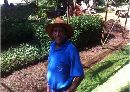 Hoje ele trabalha em várias frentes da fazenda, mas sua especial dedicação é no cuidado ao viveiro de plantas nativas da região, cujas mudas têm sido distribuídas em áreas de mananciais e desmatadas.