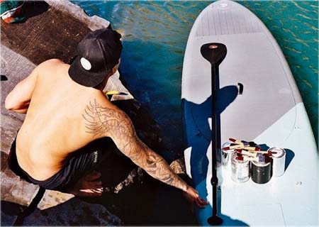Havaiano, atualmente morando em Nova York, ele saiu com sua prancha de “stand up paddle” equipada com tintas e spray, para pintar paredes.