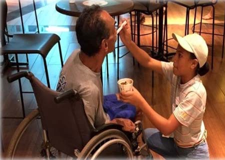 Uma funcionária da rede de lanchonetes McDonald’s foi flagrada ajudando um cliente cadeirante a tomar sorvete.
