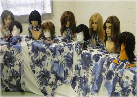 A produção das perucas, lenços e próteses mamárias, feitas com malha de algodão e polietileno, acontece na própria unidade prisional, sob as orientações da colaboradora da ONG, Sandra Helena Barros Portugal, e do cabeleireiro Eduardo Avancini.