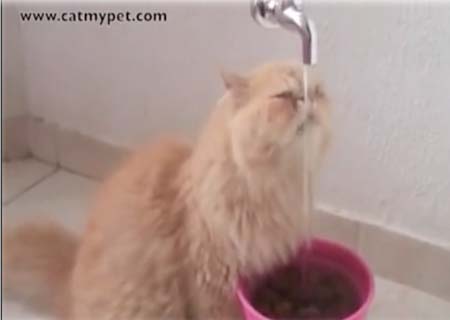 Uma delas é a torneira-bebedouro para cachorros. A outra é o bebedouro-torneira Magicat, para gatos como diz o nome em inglês. (vídeo abaixo)