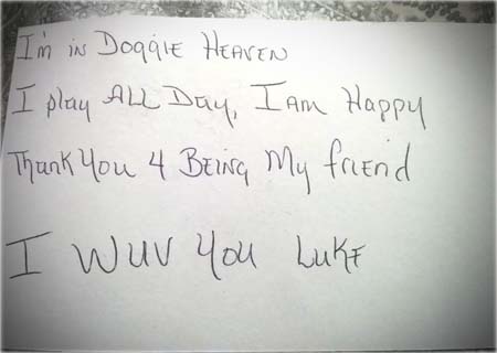 Para tentar amenizar a doer do filho, Luke, de 3 anos, a americana Mary Architzel Westbrook teve a ideia de escrever cartas destinadas ao cachorro com o seguinte destinatário: “Moe Westbrook, Céu dos Cachorrinhos, Nuvem 1”, contou ela em entrevista à revista Distinction Magazine.