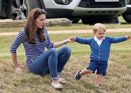 A Duquesa de Cambridge vestia um jeans básico, apertado, enquanto brincava com o outro filho, o príncipe George, de 1 ano.