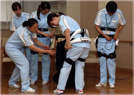 Funcionários de casas de repouso para idosos da província de Kanagawa, no Japão, já receberam os trajes robóticos.