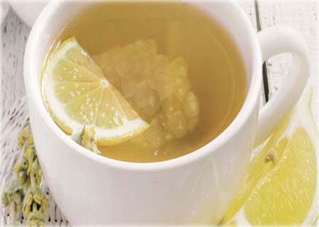 Depois que o sagu ficou pronto, coloque-o em uma panela com o chá e deixe cozinhar em fogo médio por 10 minutos. Ponha mel ou adoçante e beba quente ou frio.