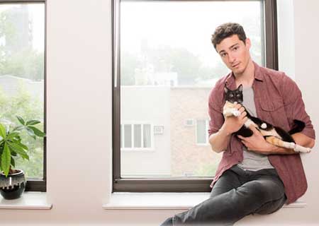 São homens da indústria de entretenimento, atores, diretores, que viraram modelos com seus cães e gatos.