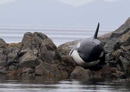 Uma orca que ficou encalhada nas rochas de uma praia foi mantida viva durante 8 horas por uma equipe dedicada de pesquisadores e voluntários/