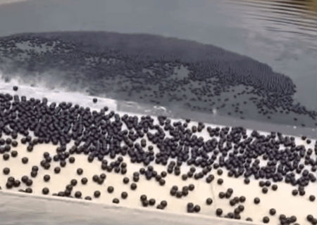 As ‘shade balls’ são escuras, flutuam e podem reduzir a evaporação.