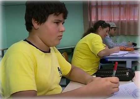Mãe e filho estão estudando na mesma série e na mesma classe.