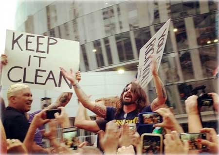 Para abafar a manifestar preconceituosa, os músicos do Foo Fighters aplicaram a famosa pegadinha do “Rickroll” e atraíram uma pequena multidão, que gritou mais alto e dissolveu a manifestação dos radicais. (assista abaixo).