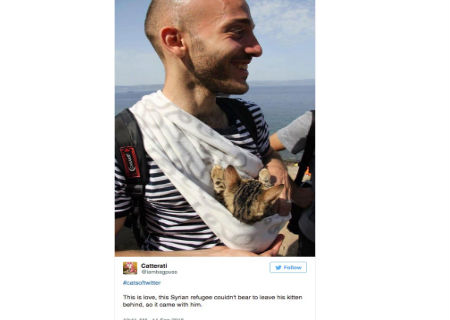Um refugiado sírio fez a perigosa travessia do mar Mediterrâneo junto deu seu gato, o pequeno Zaytouna.