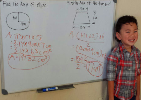 O menino de apenas 4 anos – completará 5 em dezembro – faz cálculos difíceis demais para a idade dele e para pessoas mais velhas também.