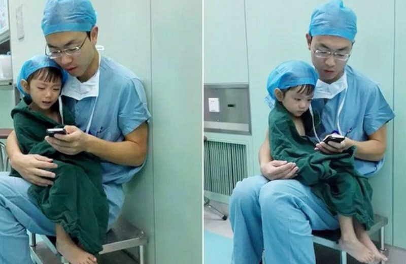 De acordo com o jornal britânico Daily Mail, ele colocou a paciente no colo, pegou seu celular e colocou alguns desenhos que ela gostava de assistir.