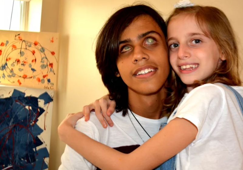 “Já fiz uma lista das quatro coisas que quero ver primeiro na minha vida: a primeira é o espelho; a segunda são os quadros da Sofia; a terceira é minha irmãzinha [de 3 anos]; e a quarta é ver no Google Earth o estilo de cada país”, conta Vinícius.