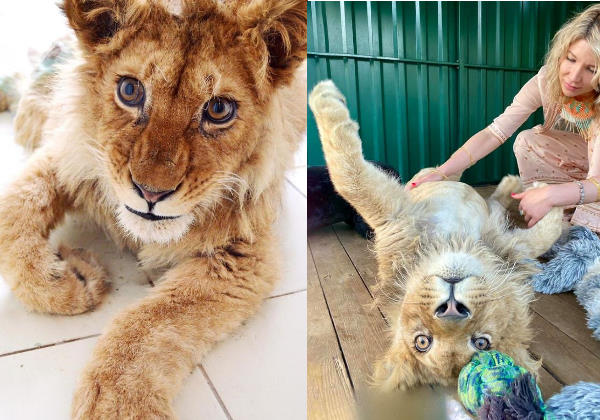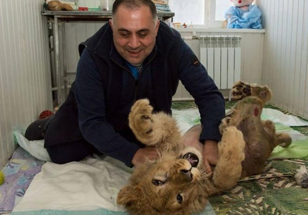 Com poucos meses, o leãozinho foi separado da mãe e levado para ser atração turística, na Rússia.