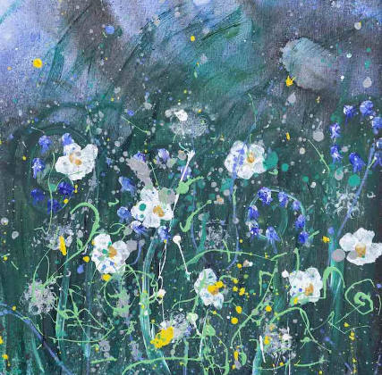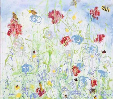 As pinturas de Daisy sempre apresentam flores e ela adora sair do estúdio e ir para o jardim com suas tintas.