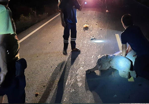 Ele foi acionado durante a sua folga, após o filhote ter sido atingido por uma motocicleta ao cruzar uma estrada, junto com uma manada de elefantes, na província de Chanthaburi.