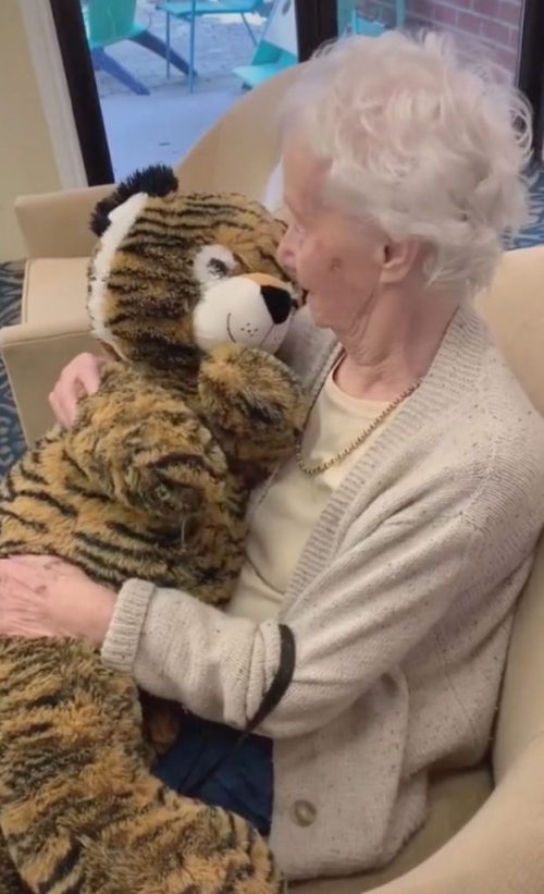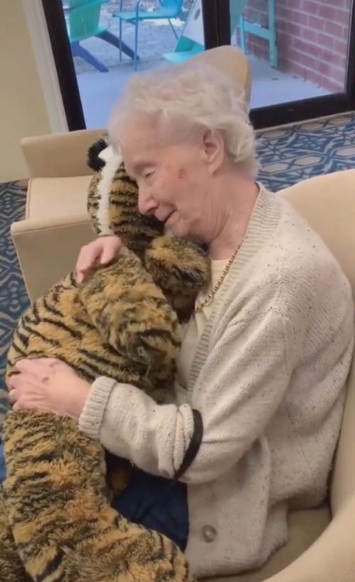Tigre de pelúcia salva Natal de vovó: “sentia falta de abraçar alguém assim”