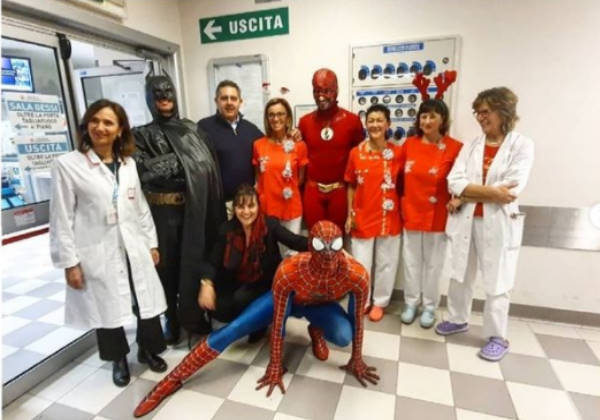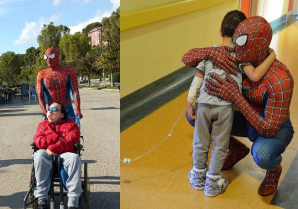 Há três anos, disfarçado de Homem-Aranha, ele visita pequenos pacientes das enfermarias pediátricas da Ligúria.