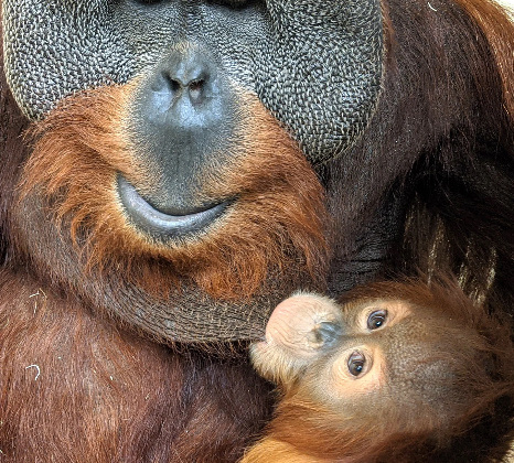 Um orangotango macho da espécie Sumatra assumiu a função de mãe no zoológico de Denver, em Colorado, nos Estados Unidos.