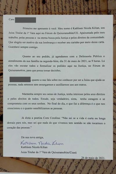 Depois e assistir a uma entrevista da juíza no Programa SerTão Conta Mais, da SerTão TV e Rádio Campo Maior, a criança mandou uma cartinha para a produção do programa e pediu que fosse entregue à juíza do município, Kathleen Nicola Kilian.